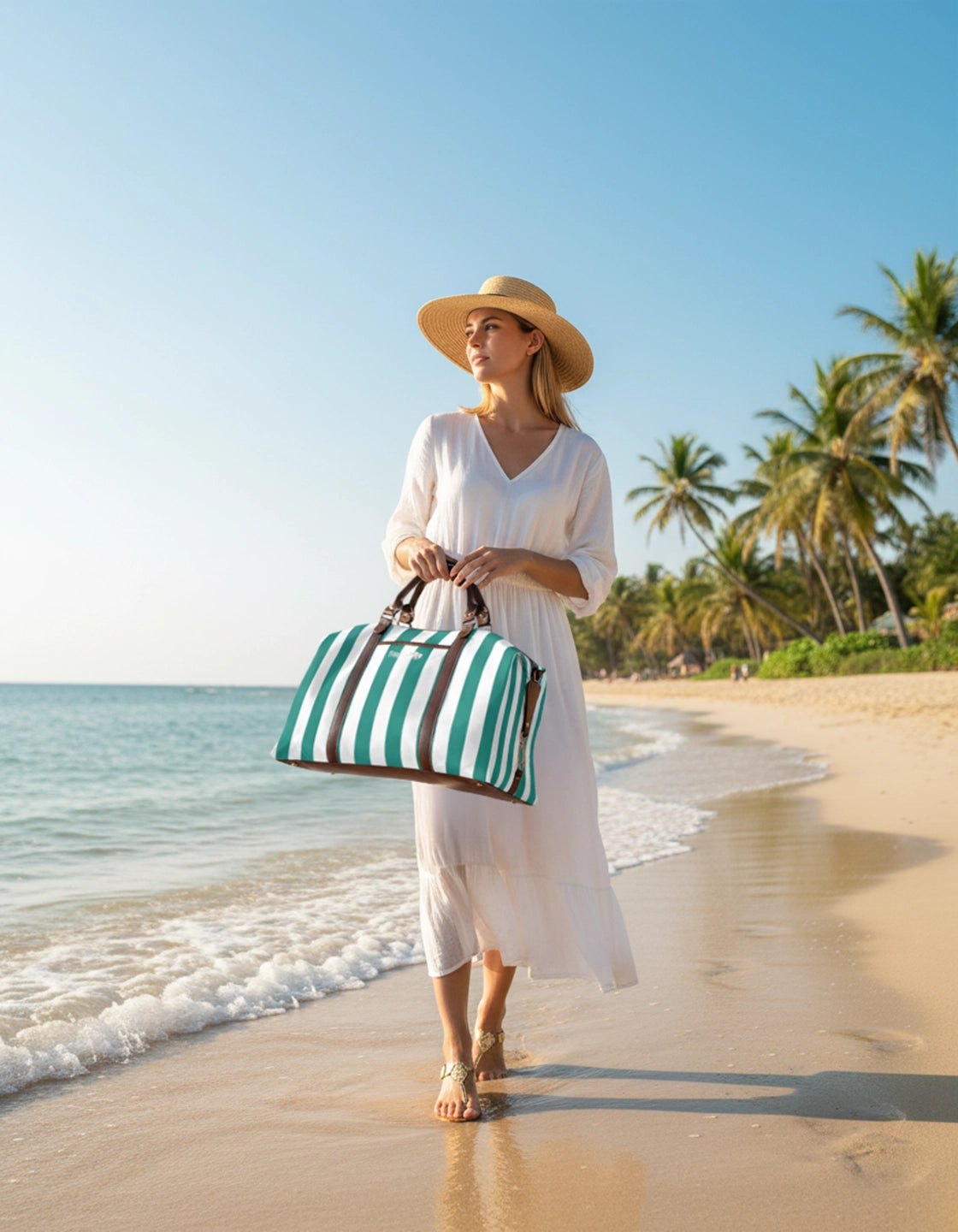 Coastal Cabana Striped Teal Bag